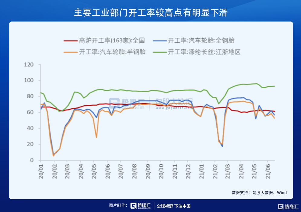 在國內,二季度以來,中國的多個主要工業部門的開功率也在走低,意味着產能過剩或開始出現。