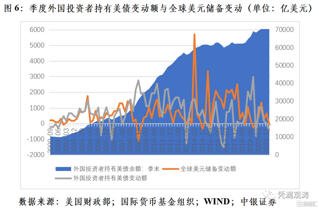 3、這次外國投資者持有美債下降與全球美元儲備減少同步