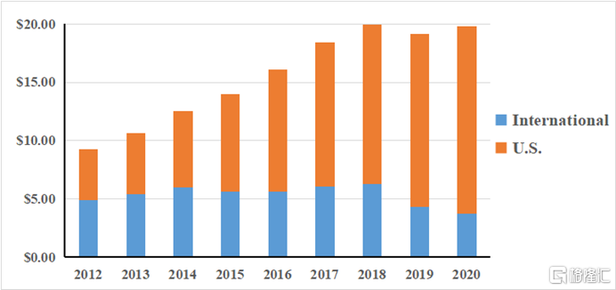 即使如此,卻也無可奈何。Humira的專利週期本應早就結束,艾伯維通過專利策略、談判、訴訟等手段,成功的阻止生物類似藥在美國的上市,使得艾伯維仍然擁有市場定價權。可以看出,從2014年開始,隨着美國市場銷售額的全球佔比逐漸增大,美國市場對於艾伯維和Humira都顯得至關重要。隨着2018年歐洲的大部分專利保護到期,受生物類似藥侵蝕,美國市場之外的銷量或將進一步降低。或許,這也其美國市場再次提高銷售價格的最後瘋狂。