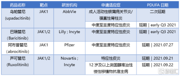 2021年,烏帕替尼相繼在歐洲獲批銀屑病關節炎和強直性脊柱炎,本應走向更快的發展道路;然而,在美國的發展速度卻被按下了暫停鍵。2021年1月,託法替布的長期安全性數據公佈之後,JAK抑制劑的安全性風險被FDA密切關注,特別是不良心血管事件(MACE)和惡性腫瘤(不包括非黑色素瘤皮膚癌(NMSC)。烏帕替尼也不可避免的處在關注之列,儘管艾伯維一再強調產品的安全性,FDA仍舊發佈警告,要求重新評估獲益風險。銀屑病關節炎和強制性脊柱炎適應症的上市申請在被FDA延期審查之後,6月25日再次被告知,無法在PDUFA行動日期做出決定,且未披露最終的決議日期。7月,或將迎來FDA針對特應性皮炎的監管決定,烏帕替尼是否能夠翻越Jak抑制劑的安全性鴻溝,對烏帕替尼和所有Jak抑制劑而言,都將成爲重要的裏程碑事件。