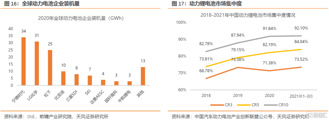 ①板塊整體驅動力仍來自下游新能源汽車需求快速增長。中汽協數據顯示,今年1-6月,我國新能源汽車產銷分別完成121.5萬輛和120.6萬輛,同比均增長2倍。動力電池方面,今年1-6月,我國動力電池產量累計達74.7GWh,同比增長217.5%。向前看,國內需求方面如上述,按銷量計當前12.05%的滲透率水平仍有進一步提高空間;全球需求方面,過去兩年中歐新能源車滲透率提升較快,美國相對落後,拜登政府加碼新能源車是未來的重要增量。