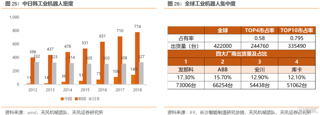1)工業機器人:低密度下滲透空間+國產化提升空間