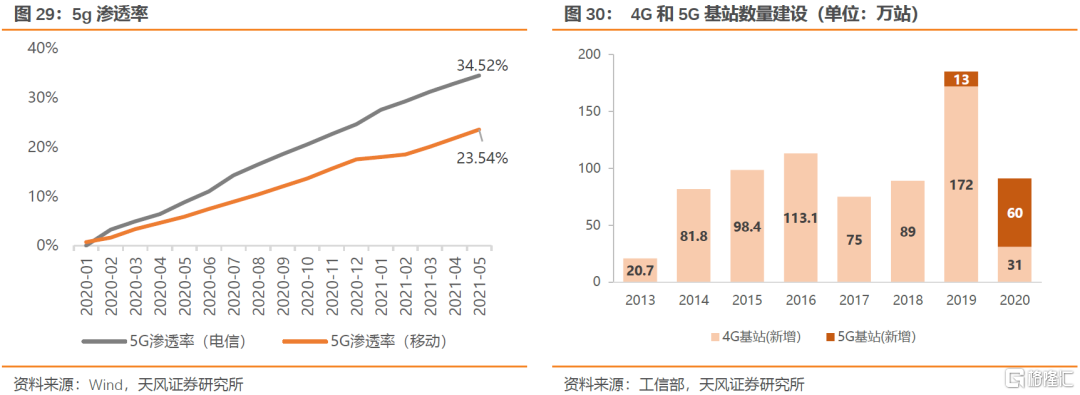 此外,橫向比較來看,相比於4G階段,當前我國在5G基礎設施及應用領域處於全球領先位置。據工信部介紹,當前我國5G產業系統性領先主要體現在三個方面:一是5G網絡建設保持領先,當前我國開通5G基站96.1萬個,終端連接數達到3.65億;二是5G標準必要專利佔比持續全球領先;三是5G應用賦能融入千行百業態勢已經顯著。