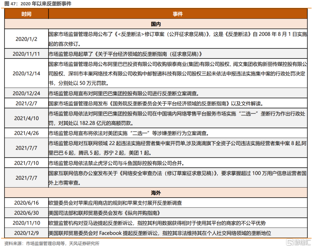 近期的事件催化來自滴滴事件引發的,對網絡安全(數據安全)領域的高度關注。擴大範圍來看,本輪對於互聯網平台數據安全和壟斷問題的監管從去年開始明顯收緊。政策框架上,2020年1月,《反壟斷法》在實施12年之後迎來首次修訂;4月《網絡安全審查辦法》正式發佈;11月再發布針對互聯網平台的反壟斷指南;21年6月通過《中華人民共和國數據安全法》。反壟斷大幕開啟是中長期變量,相應對網絡安全領域構成長期利好。