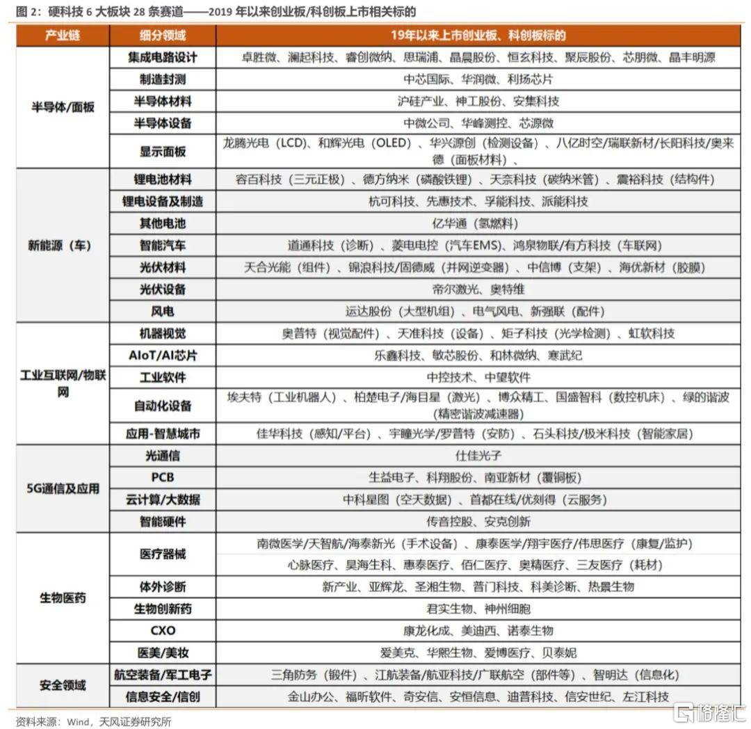 附2:硬科技6大板塊28條賽道——2019年以來創業板/科創板上市相關標的