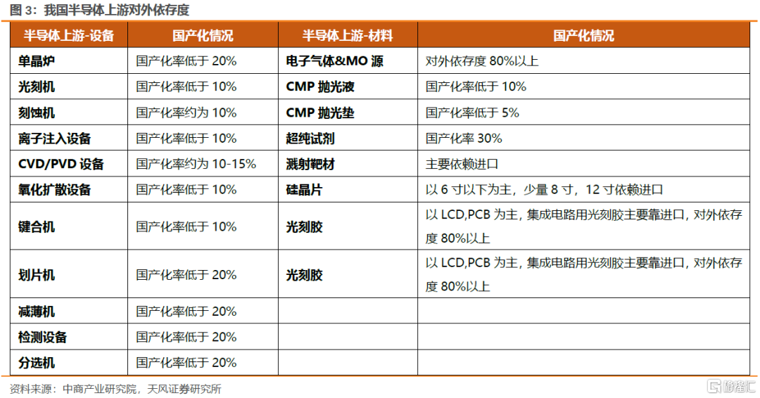 (1)國產替代:主要為上中游的材料、設備;IC設計環節的EDA工具、模擬IC