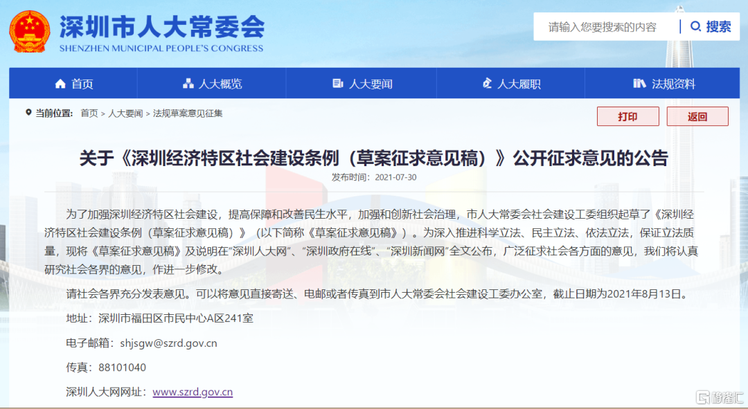 日前,深圳市人大常委會辦公廳發佈《深圳經濟特區社會建設條例(草案徵求意見稿)》(以下簡稱:《意見稿》),公開徵求意見。