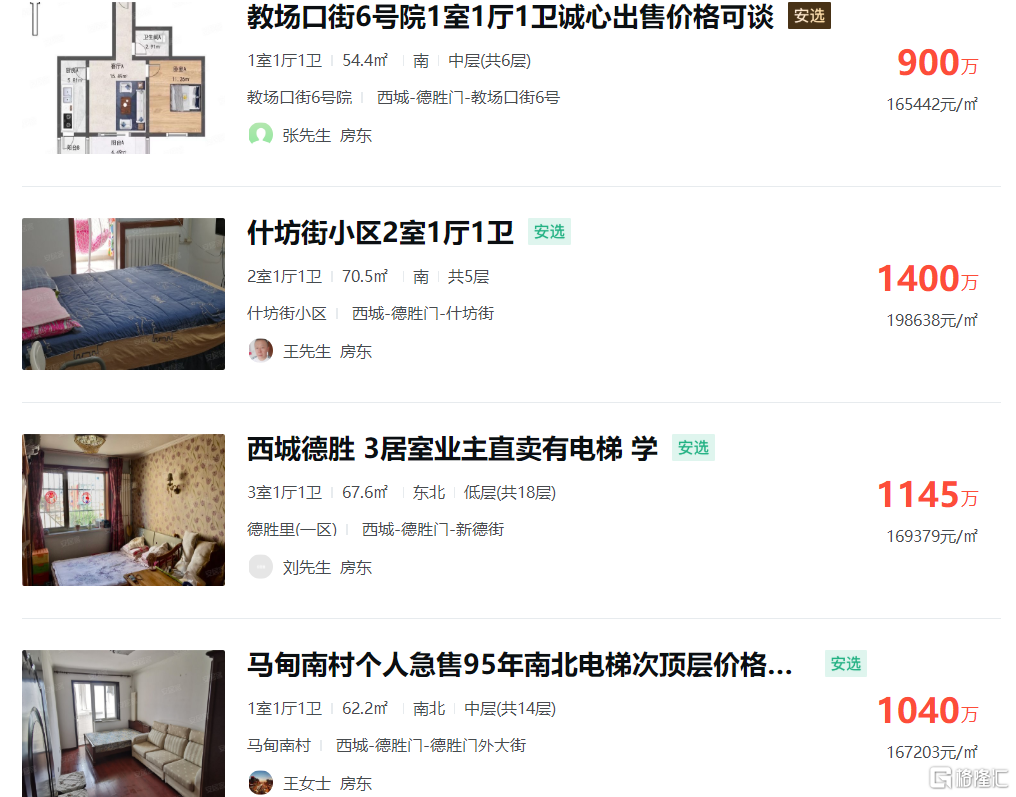 據悉,近半個月來,北京西城區的頂尖學區房房價出現鬆動,德勝學區內的學區房有降價近200萬的房源待售。在二手房交易平臺上,“業主直售”“價格可談”“急售”的字樣清晰可見。