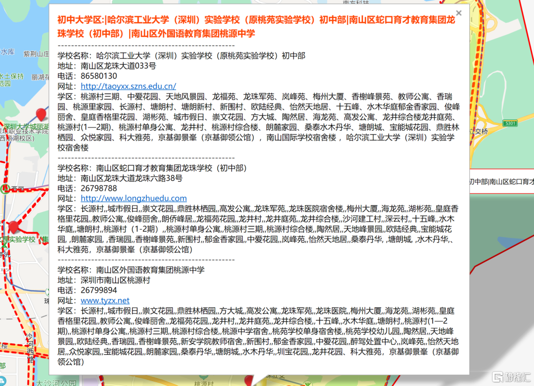 2015年,南山區的西麗桃園片區就已經實行大學區入學制度,片區內的學生入讀初中有桃源中學、龍珠學校及哈爾濱工業大學實驗學校在內的學校可以選擇。