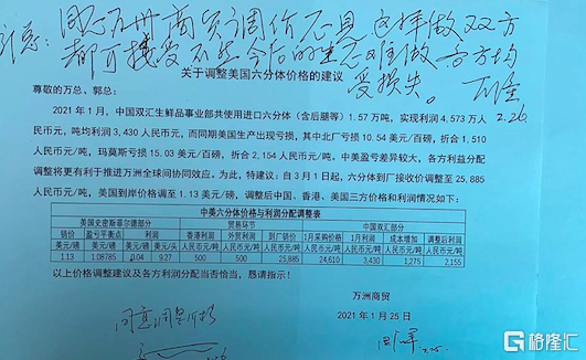 “一直以來,中糧都是我們的天敵。2019年,為了把美國的肉進口,我去談進口貿易的事情 ,被授權一些減免税的產品 ,但是一定要和中糧合作。為了達成這個貿易 ,我一再説服大家,特別是和老爺子談,這種情況下,我們一定要和中糧合作,最終他同意了這個意見。2019年至今,是美國史密斯菲爾德利潤最高的一年,將近9億美金。2019年之後,他不讓我做了,那我就不做了。我所負責的業務,都被郭麗軍接管。2019年後,郭麗軍做公司的貿易部門,直接主導外匯對中交易,這兩年賠了幾千萬。“
