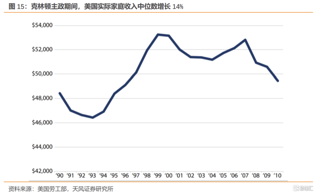 3. 未來中期維度的宏觀政策變量將圍繞一個核心:從“效率優先”到“兼顧公平”。在過去30年效率優先的時代,積累、容忍了很多問題,當前到了兼顧公平的時代,核心就是要解決效率優先時代的後遺症,總結下來與克林頓上台初期類似,主要包括三個方面,對應地或可借鑑克林頓經濟學以把握宏觀政策與產業政策脈絡: