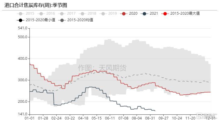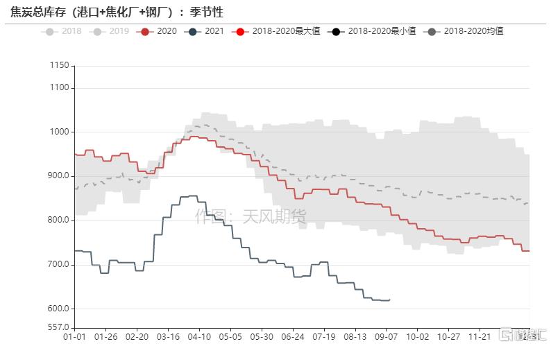 港口+110家鋼廠+230家焦化廠焦炭總庫存爲621.38萬噸,周環比+2.42萬噸,開始回升;