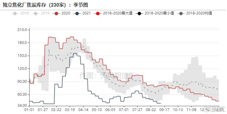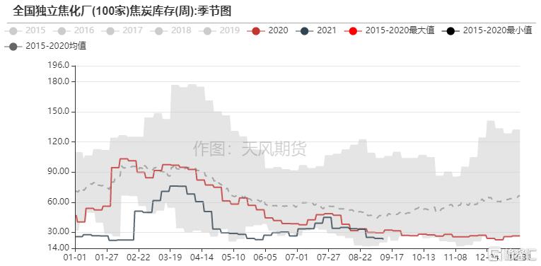 山東、江蘇以及山西等區域焦企仍有不同程度限產情況,焦企多保持低位或零庫存水平狀態。