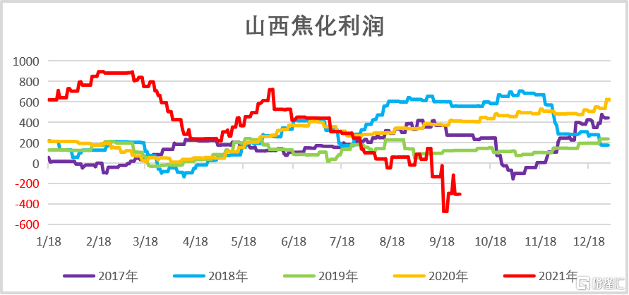 利潤:山西焦化利潤-303元/噸,周環比-8元/噸,維持低位;