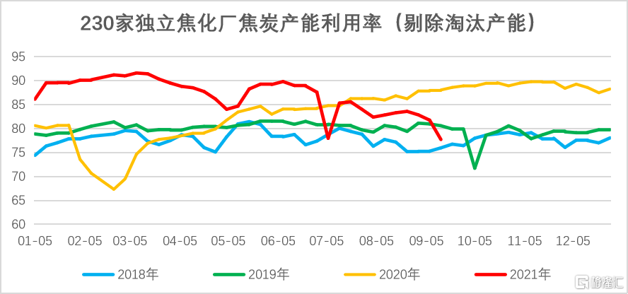 供應:230家焦化廠剔除淘汰產能利用率77.71% ,周環比-4.04%,大幅下降;