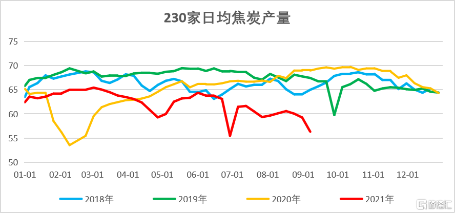 230家獨立焦化廠焦炭日均產量56.32萬噸,周環比-2.93萬噸,大幅下降;