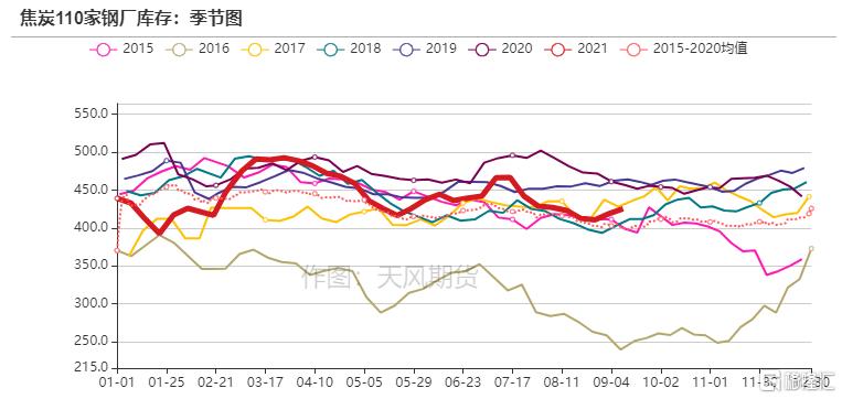 110家鋼廠焦炭庫存425.17萬噸,周環比+6.36萬噸,繼續回升;