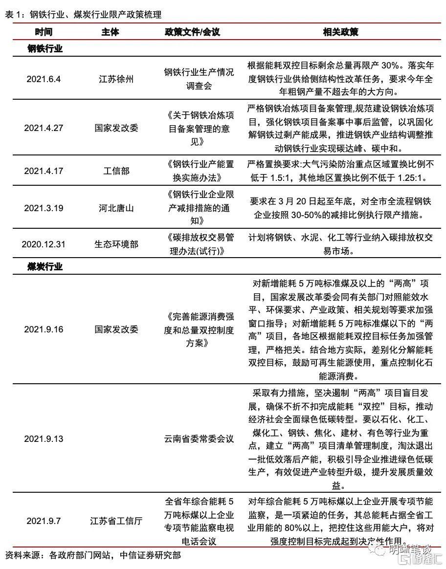 上遊週期品供給端約束難以鬆動,穩增長政策或將提振需求,短期週期品價格或將高位運行。上遊週期品供給受政策影響大,能耗雙控要求下,鋼鐵、煤炭、電力等限產催生價格上漲。短期來看,供給端限產政策未見鬆動,需求端不弱——預計基建今年年底到明年年初形成實物工作量、地產建安投資需求的擴張也能持續到明年。雖然近期上遊行業原材料價格漲幅較大,但供需格局向好支撐價格維持高位的可能性較大。長期來看,在碳中和、碳達峯的大背景下,高質量發展要求高能耗行業的轉型升級,週期性行業在長期也會經歷價格、利潤和估值擡升過程。