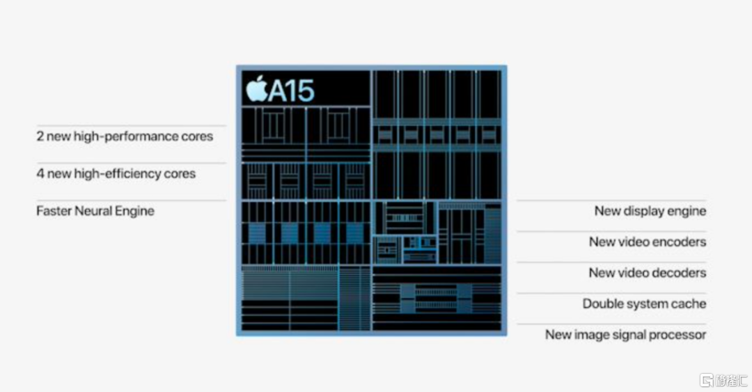 關於 A15 的幾個具體事實是,Apple 正在爲其 CPU 使用新設計、更快的神經引擎、新的 4 核或 5 核 GPU(取決於 iPhone 版本),以及全新的顯示pipeline 和視頻媒體硬件塊編碼和解碼,以及新的 ISP 改進以提高相機質量。