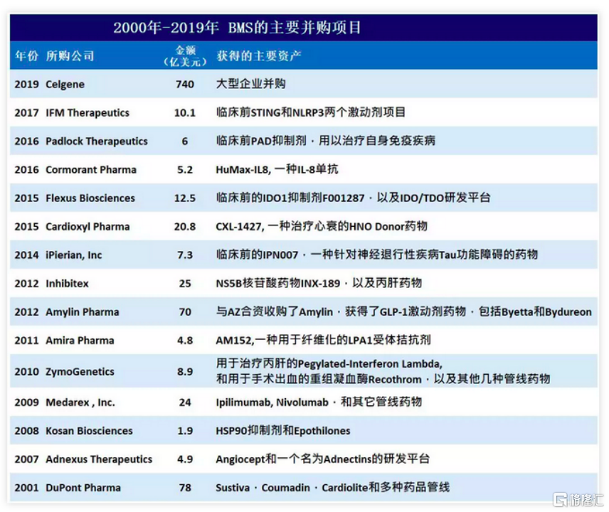 據不完全統計,截至BMS以740億美元天價收購新基之前,近20年間BMS已經進行了15次併購。