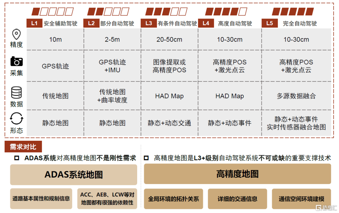 圖表:不同級別自動駕駛對於高精度地圖的需求