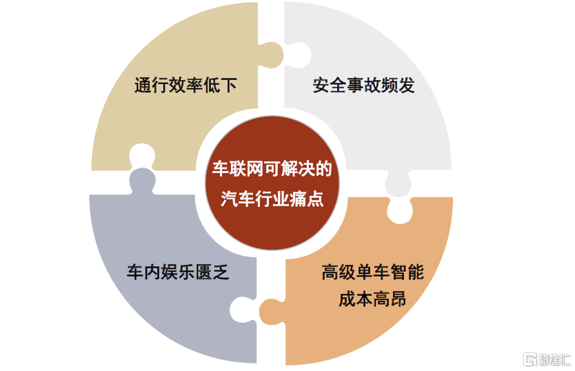 車聯網是依託新一代信息通信手段實現車內、車與人、車與車、車與路、車與服務平台全方位網絡連接和信息交互的新技術。車聯網致力於提升汽車的智能化和網聯化水平,構建智能交通的服務新業態,提升交通整體通行效率,為用户提供智能、安全、節能、高效、舒適的綜合駕乘體驗。我們預計,車聯網的發展將會帶來以用户體驗為核心的信息服務類應用、以車輛駕駛為核心的汽車智能化類應用和以協同為核心的智慧交通類應用。
