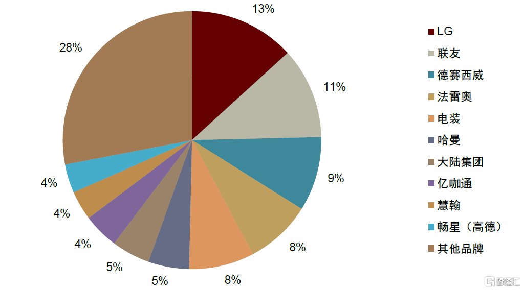 圖表:2020年自主+合資品牌T-BOX各品牌市佔率