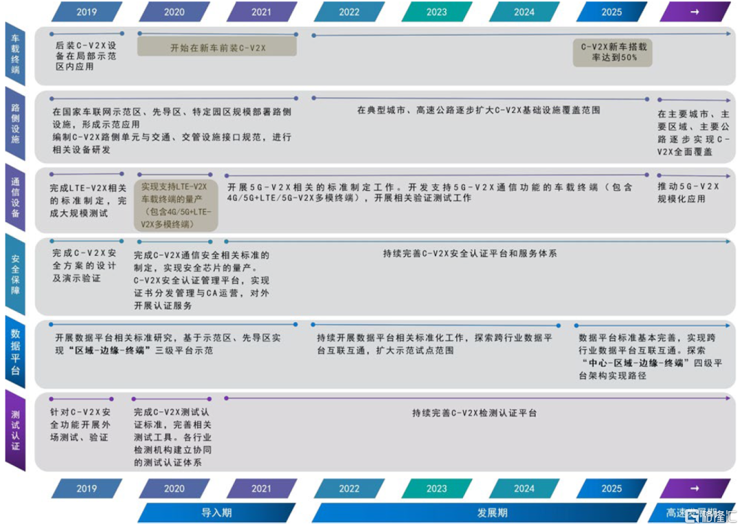 發展期則需基於先導/示範區的建設經驗,形成可推廣的商業化運營模式,並在全國典型城市進行規模化部署應用;