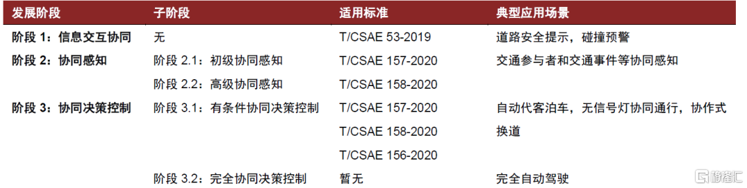 注:T/CSAE 53-2019《合作式智能運輸系統 車用通信系統應用層及應用數據交互標準》,T/CSAE 157-2020 《合作式智能運輸系統 車用通信系統應用層及應用數據交互標準(第二階段)》,T/CSAE 158-2020《基於車路協同的高等級自動駕駛交互內容》,T/CSAE 156-2020《自主代客泊車系統總體技術要求》