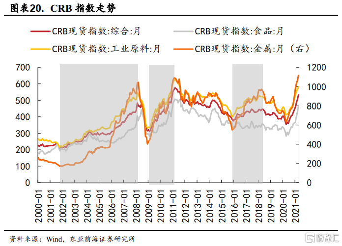 具體來看,2000年至今,大宗商品主要出現過三輪漲價週期。第一輪爲2002年1月至2008年12月的大宗商品漲價行情,此輪行情受益於美元的弱勢,石油與基本金屬價格快速上行;第二輪爲2009年2月至2011年4月次貸危機後全球流動性極度寬鬆疊加經濟復甦下的上漲行情;第三輪爲2016年1月至2018年6月間的大宗商品行情,此輪行情始於沙特凍產協議等推動下的供給收縮,原油價格的大幅上漲驅動了大宗商品的價格上行。