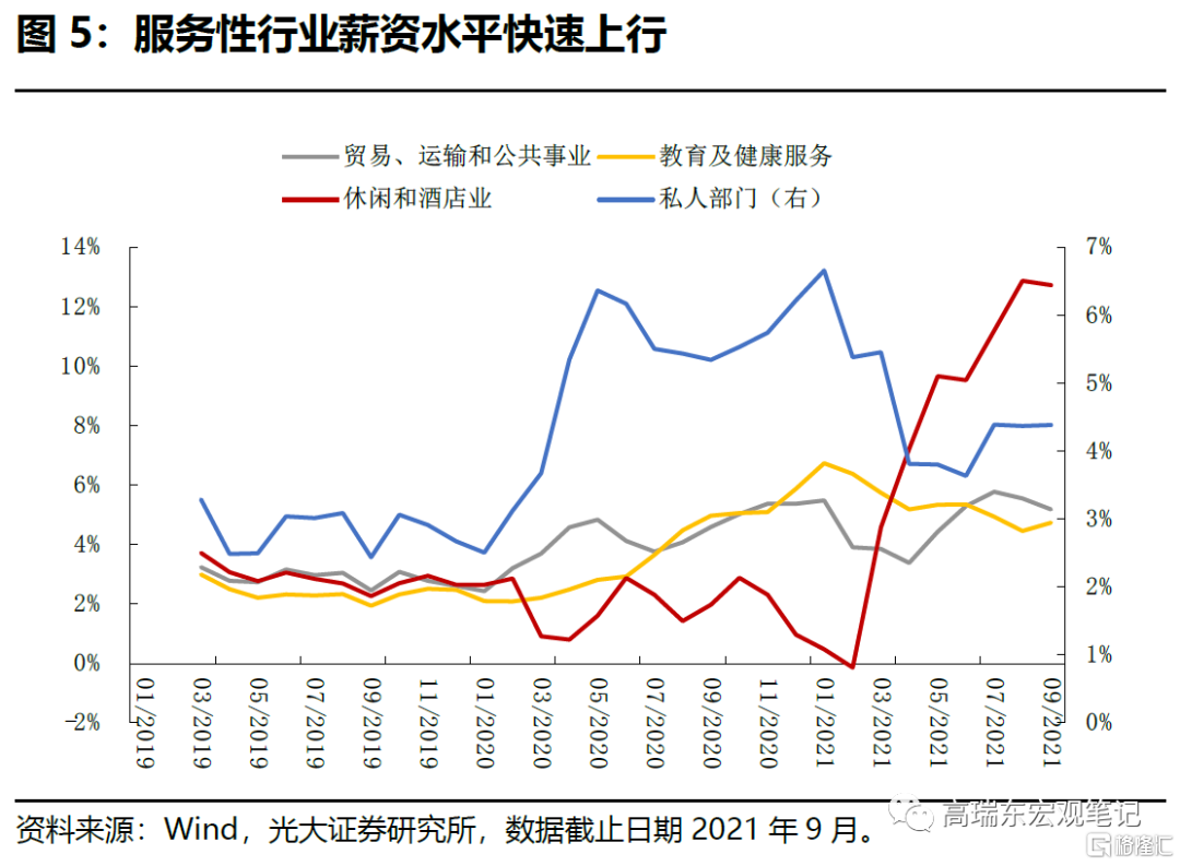 向前看,勞動力市場,尤其是服務性行業薪資水平將維持上行走勢,支撐通脹。