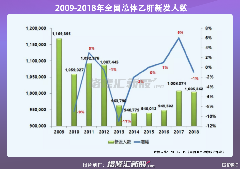 中國是一個乙肝大國,乙肝患者人數高達1個億,其併發症肝硬化、消化道出血、原發性肝癌、肝性腦病、腹膜炎等誘發死亡概率。目前,乙肝尚無法得到根治,該病患者必須終身服藥。