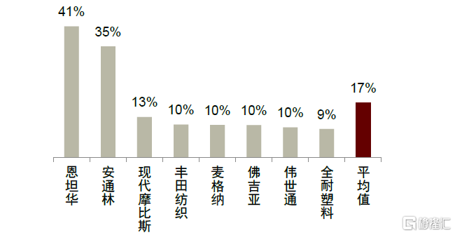 ►單品價值量低:儘管內飾件系統在整車價值中佔有一定的比重,但單品價值量仍然處於較低水平,如頂棚、遮陽板和立柱護板單價均不及百元,且利潤率有限,抑制了行業內龍頭進行整合的積極性。
