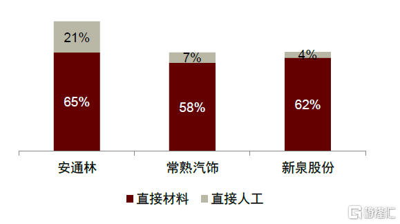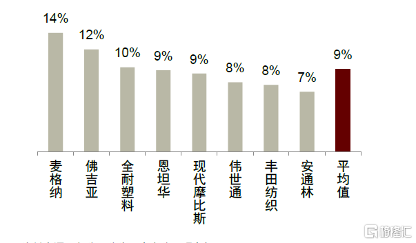 降本壓力下合資整車廠傾向選擇國產內飾件。隨着中國汽車市場進入成熟期,乘用車銷量呈現出負增長、高波動的行業特徵,合資及自主品牌整車廠均面臨較大的成本壓力,同時需要加快車型迭代以獲取更高的市場份額。而內飾件屬於勞動密集型行業,國內廠商憑藉勞動力成本優勢,可採取具有競爭力的產品定價實現市場快速滲透。隨着本土內資飾件企業整體解決方案提供能力的逐步增強,合資品牌在降本壓力下傾向選擇成本更優的國產內飾件,我們認為國內頭部內飾件企業有望實現切入合資乘用車製造商的供應體系,帶來業績高增。