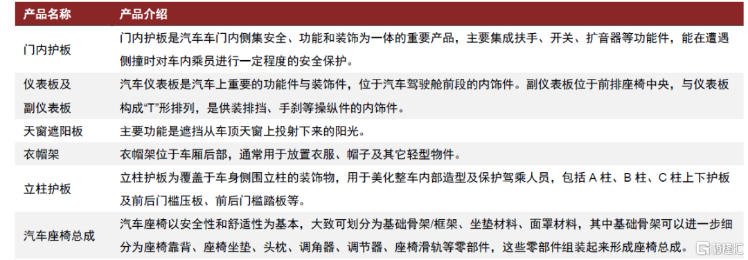 圖表2:汽車主要內飾件功能介紹