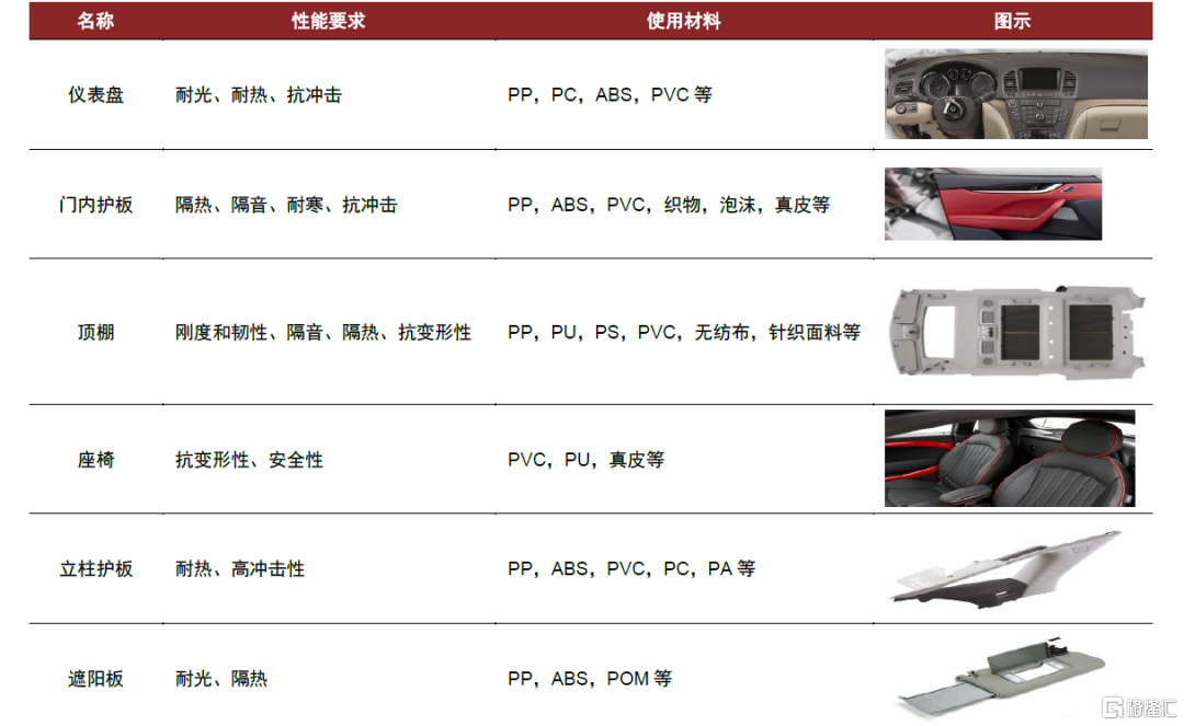 圖表23:汽車主要內飾件的性能和使用材料