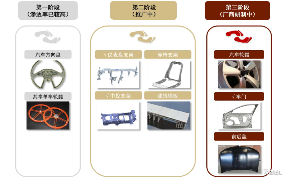 圖表24:以主要材料鎂合金為例,輕量化的主要產品按梯度向市場滲透