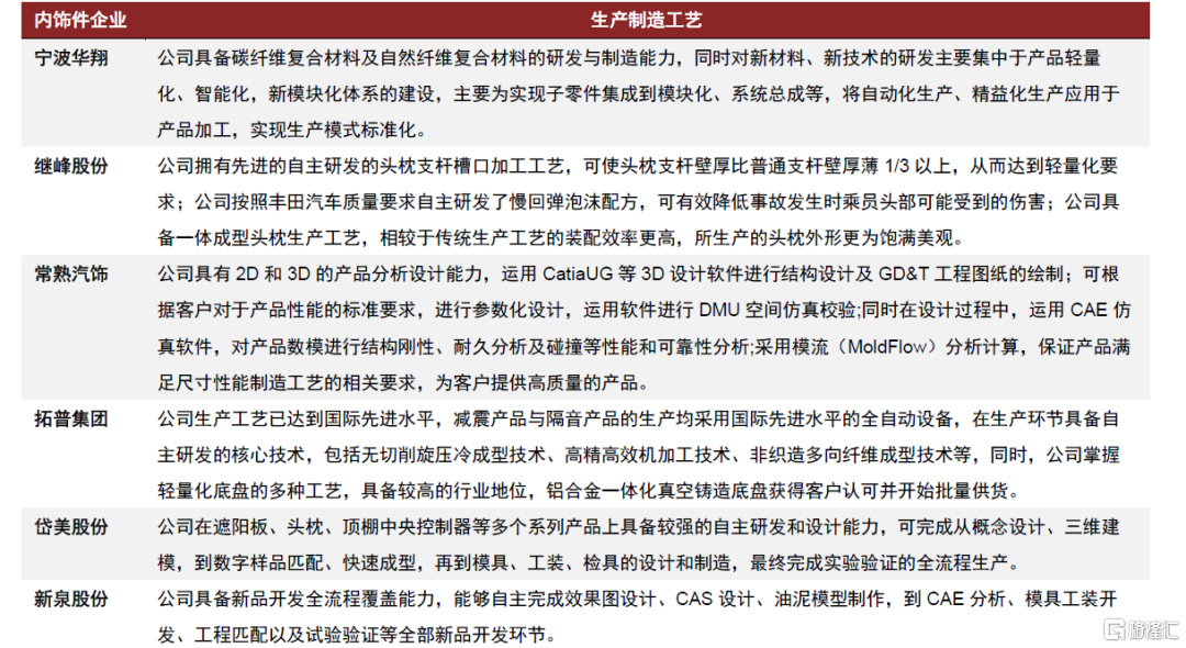 圖表26:國內部分內飾件企業已具備較成熟的生產製造工藝能力