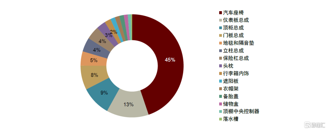 圖表3:汽車內飾件各部分單車價值量佔比(2020年)