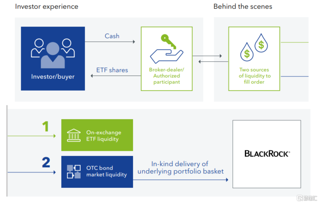 ►申購流程方面,當投資者通過AP申購債券ETF時,AP通常直接在場內申購債券ETF,或在場外交易市場購買標債券並用之從基金管理人處換取新設債券ETF份額,再將其交付給投資者,申購贖回價格往往基於申請後第二個工作日的資產淨值。