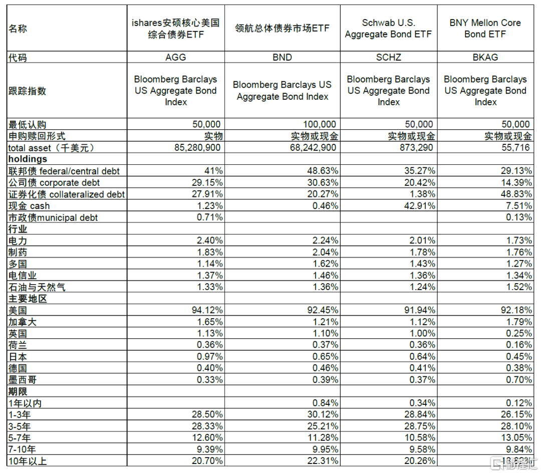 圖表22:4只跟蹤Bloomberg Barclays US Aggregate Bond Index的ETF基金對比