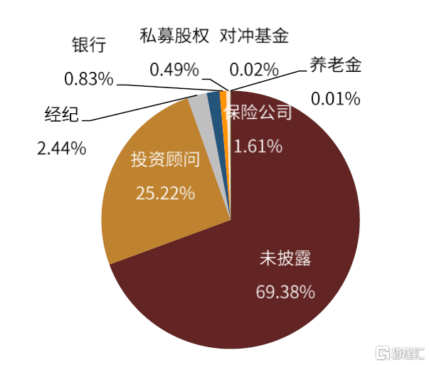我們整理了全美最大的4只代表性債券ETF持有人的情況見下述圖表,總體而言可以得到公開數據披露的投資者情況佔比較高,未披露的投資者佔比相對較低。因此,從這些披露情況來看可以總結出一些投資者的情況特點: