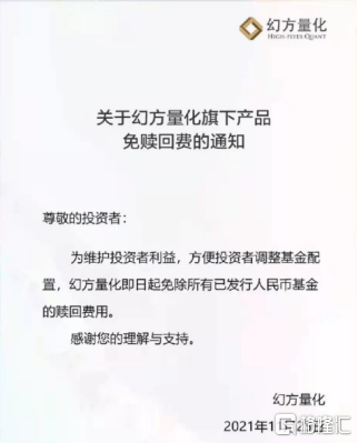 頂尖量化私募——幻方量化在宣吿“封盤”十天後,昨天又發佈公吿稱,即日起免除所有的基金的贖回費用。