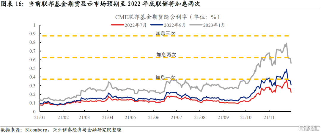 1)關注今年12月FOMC會議上聯儲是否做出加速縮減購債的決定。如果taper提速,那麼6月聯儲開啓加息的概率將會大幅提升。