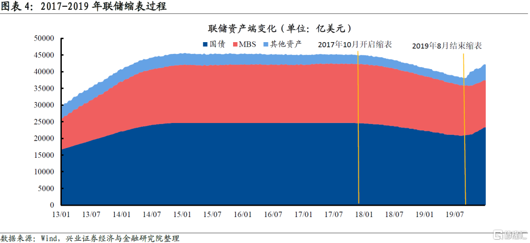 擺脫零利率下限後,聯儲貨幣政策態度主要由聯邦基金利率體現,資產負債表工具處於從屬地位。聯儲官員在不同場合多次闡述利率工具和資產負債表工具的相互關係,即聯邦基金利率是聯儲最重要的貨幣政策工具,只有在聯邦基金利率受零利率下限約束時纔會使用資產負債表工具。對於致力於貨幣政策正常化的美聯儲來說,聯邦基金利率從零利率地板擡升是最重要的標誌,聯邦基金利率的變化也能給市場最清晰的預期指引,因此聯儲首先選擇加息是最合理的選項。另外一方面,聯儲對使用資產負債表工具應對不同的經濟環境缺少經驗,而聯儲對聯邦基金利率的使用已經爐火純青。在貨幣政策正常化階段,聯儲對加息的影響更有把握,如果是先縮表,對宏觀經濟和金融市場的影響則更難預測。2013年僅taper就已經引發全球金融市場大幅震盪,縮表的後果更是難以預料。對於求穩的美聯儲來說,先加息、後縮表是最優選擇。事實上在上一輪退出寬鬆的過程中,縮表一直處於加息的從屬地位。聯儲在加息途中且預期未來仍處於加息通道時纔開啓縮表,且縮表的目的是減少冗餘流動性,使利率工具使用更有效(“hold no more securities than necessary to implement monetary policy efficiently and effectively”)。我國央行的價格型調控框架其實和美聯儲的框架很相似,孫國峯司長多次闡明最重要的是跟蹤市場利率,而不用過多關注公開市場操作和央行資產負債表,這說明流動性的“價格”遠比“數量”重要。