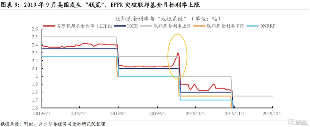 常備回購工具(Standing Repo Facility)的推出意味着此後的緊縮週期中縮表大概率不會缺席。2021年6月FOMC會議上聯儲正式推出SRF工具,在流動性緊張的情景下合格對手方可以通過SRF以國債作爲質押從美聯儲借出美元。該工具有兩大作用:1)確保貨幣政策的有效實施和貨幣市場的平穩運行。2019年9月,繳稅和國債供給因素疊加導致機構對超儲需求大幅上升,這次“錢荒”下聯邦基金實際利率突破了聯邦基金目標利率上限。如果將SRF利率設置在聯邦基金目標利率的上限,那麼就不再會發生類似的情況,機構將不會被迫拋售國債換取流動性,三方回購市場和歐洲美元市場等其他貨幣市場也將運行得更加平穩。2)降低機構對超儲的需求。在沒有SRF工具的情況下,爲了應對臨時流動性需求,銀行會預防性持有較大數量的超儲。SRF工具的落地將大幅減少銀行對超儲的需求量。既然SRF工具導致銀行超儲需求下降,那麼通過縮表抽離銀行體系過剩流動性也更加合理,縮表造成貨幣市場震盪的風險也大幅降低。