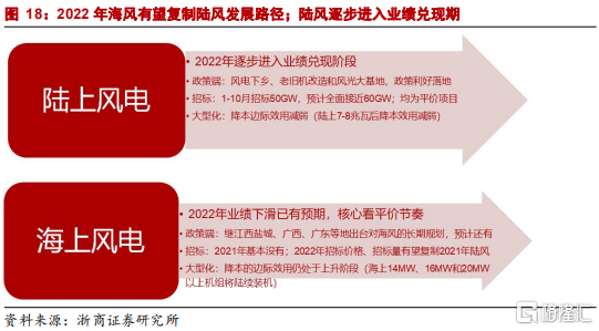 2022年建議超配海上風電產業鏈。海風有望複製2021年陸上風電招標價格大幅下降和招標量快速增加的過程,估值仍有提升空間。而2022年陸上風電進入業績兑現期,今年底與明年初主機廠與零部件的價格談判是最大變數。