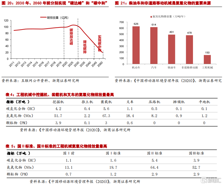 《中國移動源環境管理年報(2020)》數據顯示,農業機械和工程機械在非道路移動源排放佔比約為60%~70%,並且明確要求“十四五”時期單位國內生產總值能耗和二氧化碳排放分別降低13.5%和18%。
