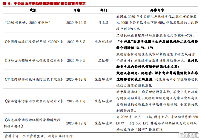 為了響應“3060”碳達峯和碳中和的目標,中央政府層面從減排目標、防治技術和支持政策等方面為發展電動化的工程機械指明方向;各地方政府則從限制/禁止高排放的非道路工程機械入手,要求嚴格管理和控制高排放非道路車輛的使用,引導、鼓勵、支持淘汰高排放機動車和非道路移動機械。為應對非道路機械排放標準的持續升級,研發新能源非道路機械已經在勢在必行。