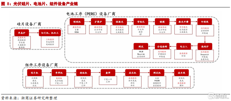 在光伏行業需求10年10倍賽道的大背景下,需求提升+技術迭代帶動下游製造企業大幅擴產,設備廠商需求爆發。光伏設備重點聚焦硅片、電池片、組件設備龍頭。
